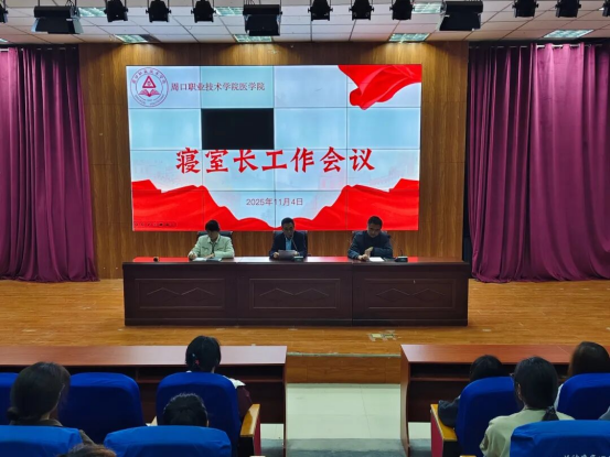 为全面加强学生宿舍的管理工作,营造安全、整洁、文明、和谐的学习生活环境。11月4日,周口职业技术学院医学院在多媒体报告厅组织召开了全院寝室长大会,医学院党总支书记苑建伟、副院长王向华、学管办主任聂蕾、各班寝室长等相关人员参加了本次会议。