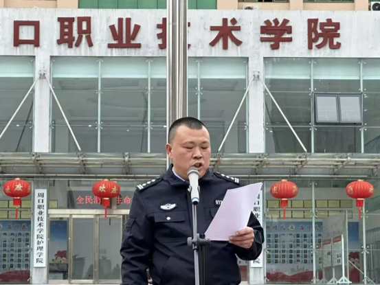 为提升大学生防范电信诈骗意识,筑牢校园安全防线,有效预防电信网络诈骗案件发生。11月12日,周口职业技术学院文昌校区组织开展了反电信网络诈骗专题宣传活动。本次宣讲活动我们邀请到示范区分局搬口派出所所长王雪峰为同学们进行反诈宣传教育。医学院党总支书记苑建伟、学管办主任聂蕾出席本次活动。全体在校生参加本次活动。